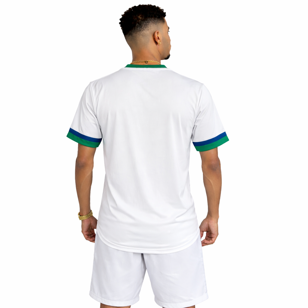 Camisa Santos Brasil Seleção Quebrada Brasileira Copa Branca. Modelo exclusivo com design inspirado na identidade do futebol brasileiro, combinando o estilo do Santos com elementos da seleção em uma proposta urbana. Confeccionada em tecido leve e resistente, proporciona conforto para o uso diário. Ideal para torcedores e para quem busca uma peça diferenciada para compor o visual.